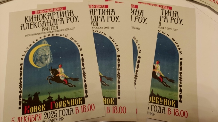 Первыми обычными зрителями стали жители Тюменской области — родины автора «Конека-Горбунка» Петра Павловича Ершова. Именно здесь 210 лет назад в селе Безруково в двухстах восьмидесяти двух километрах от Тюмени родился автор бессмертной русской сказки. Сюда в Тюмень в ДК «Нефтяник» и прилетела первая цветная копия восстановленного фильма. Переполненный зал, мал и стар, яблоку негде упасть затих… Советник Генерального директора Госфильмофонда России Диана Каримовна Маштакеева раскрыла сибирякам главную тайну — рассказала про подмосковные Белые столбы, где под сенью белоствольных берез находятся кинозакрома Родины, хранящие миллионы метров кинопленки с бесценными шедеврами отечественного и зарубежного кино. Рассказала о людях, собирающих и оберегающих эти сокровища, лечащих временно заболевшие кинопленки, дающих вторую жизнь любимым фильмам. Зрители узнали, что не только фильмы, но и афиши к ним составляют часть большой коллекции Госфильмофонда России, бережно хранящей материалы по истории мирового кино. Особый огонь интереса засветился в глазах зрителей во время выступления главного искусствоведа Отдела аналитического сопровождения мероприятий и международного сотрудничества Госфильмофонда Кирилла Андреевича Власкина, раскрывшего некоторые тайны технологии создания двухцветных фильмов и секреты их восстановления настоящими современными волшебниками — реставраторами.