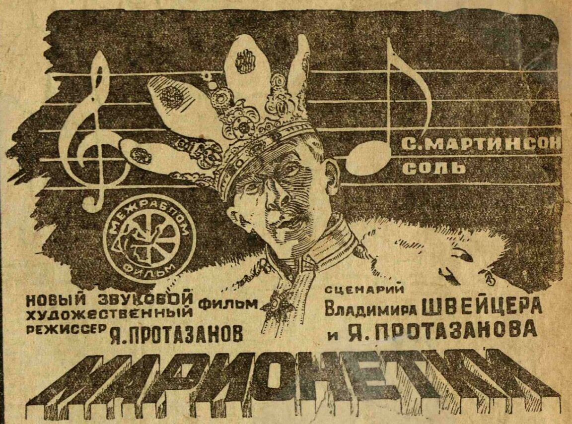 СССР, Межрабпомфильм, 1933, ч/б, 7 ч., 2661 м, 35 мм. 1.37:1, монофонический (система П.Г.Тагера «Тагефон»).