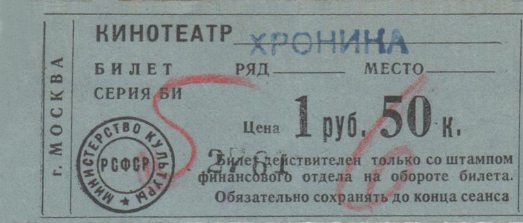 Московский кинотеатр «Хроника» Николай Майоров Рейтинг: 0 28.10.2025, 15:13 3 Views 0 Comments Билет в московский кинотеатр «Хроника». 20.02.1954 на сеанс 18.40 Оцените публикацию 0 Рейтинг За Против Written by Николай Майоров See more Предыдущая публикация Отвечавший за развитие кинематографа Дмитрий Давиденко покидает Минкультуры Следующая публикация Сталинград. Кинотеатр «Комсомолец» VKontakte Telegram Добавить комментарий Отменить ответДля отправки комментария вам необходимо авторизоваться.