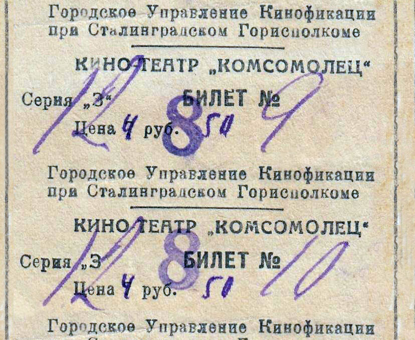 Сталинград. Кинотеатр «Комсомолец» Николай Майоров Рейтинг: 0 28.10.2025, 15:22 4 Views 0 Comments Билет в кинотеатр «Комсомолец,» Сталинград, 1940-е Оцените публикацию 0 Рейтинг За Против Written by Николай Майоров See more Предыдущая публикация Московский кинотеатр «Хроника» VKontakte Telegram Добавить комментарий Отменить ответДля отправки комментария вам необходимо авторизоваться.