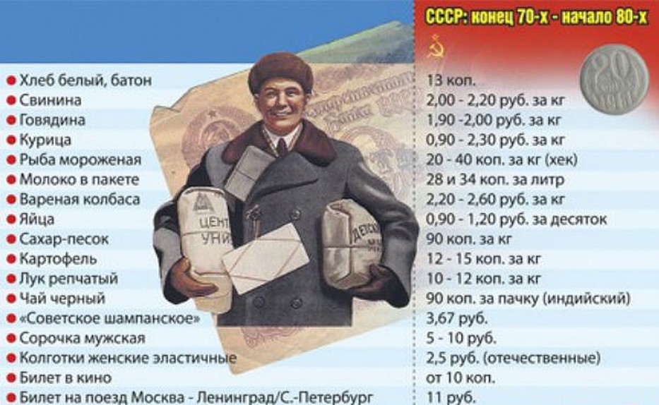 СТАТИСТИКА. Цены на продукты и товары конец 70-х начало 80-х Николай Майоров Рейтинг: 0 20.02.2026, 15:05 0 Views 0 Comments деньги Цены на продукты и товары конец 70-х начало 80-х Оцените публикацию 0 Рейтинг За Против Written by Николай Майоров See more Предыдущая публикация «Ленинград в борьбе» (1942) VKontakte Telegram Добавить комментарий Отменить ответДля отправки комментария вам необходимо авторизоваться.